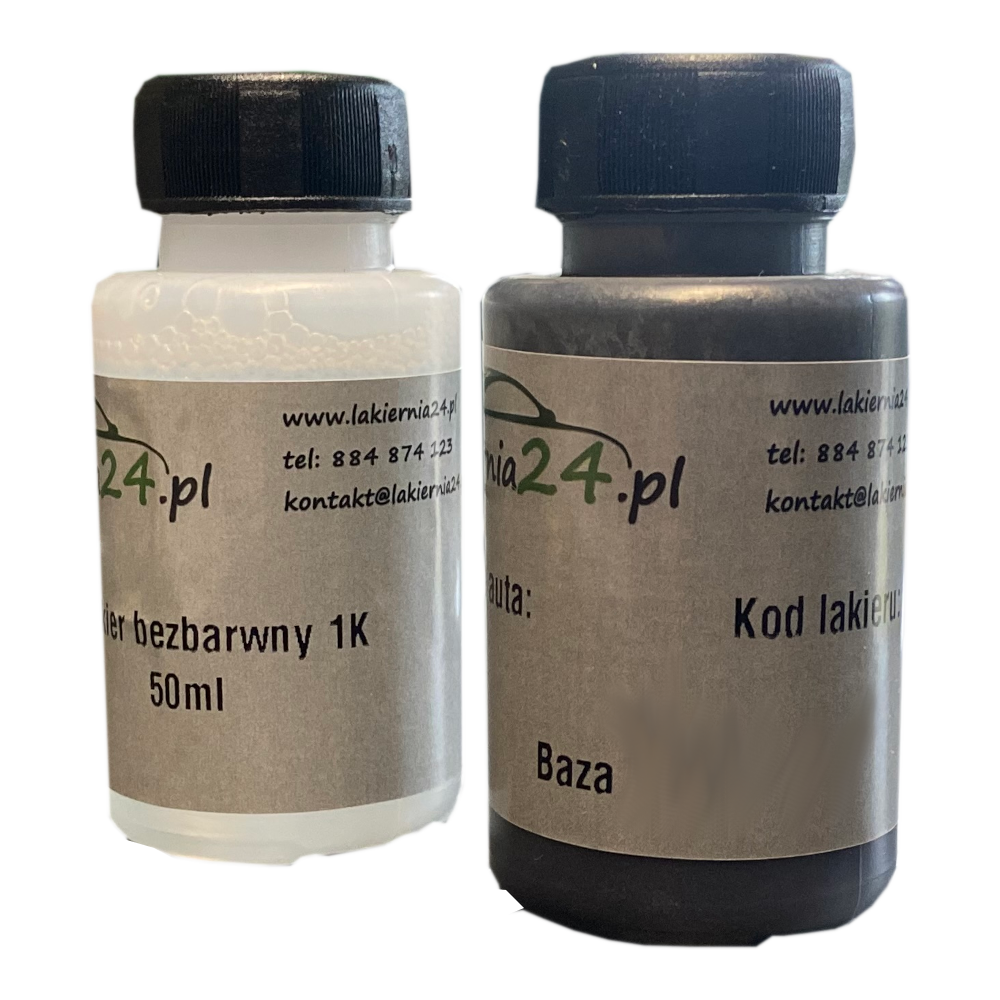 Zestaw zaprawka lakiernicza, lakier bazowy Mipa 50ml + lakier bezbarwny 50ml