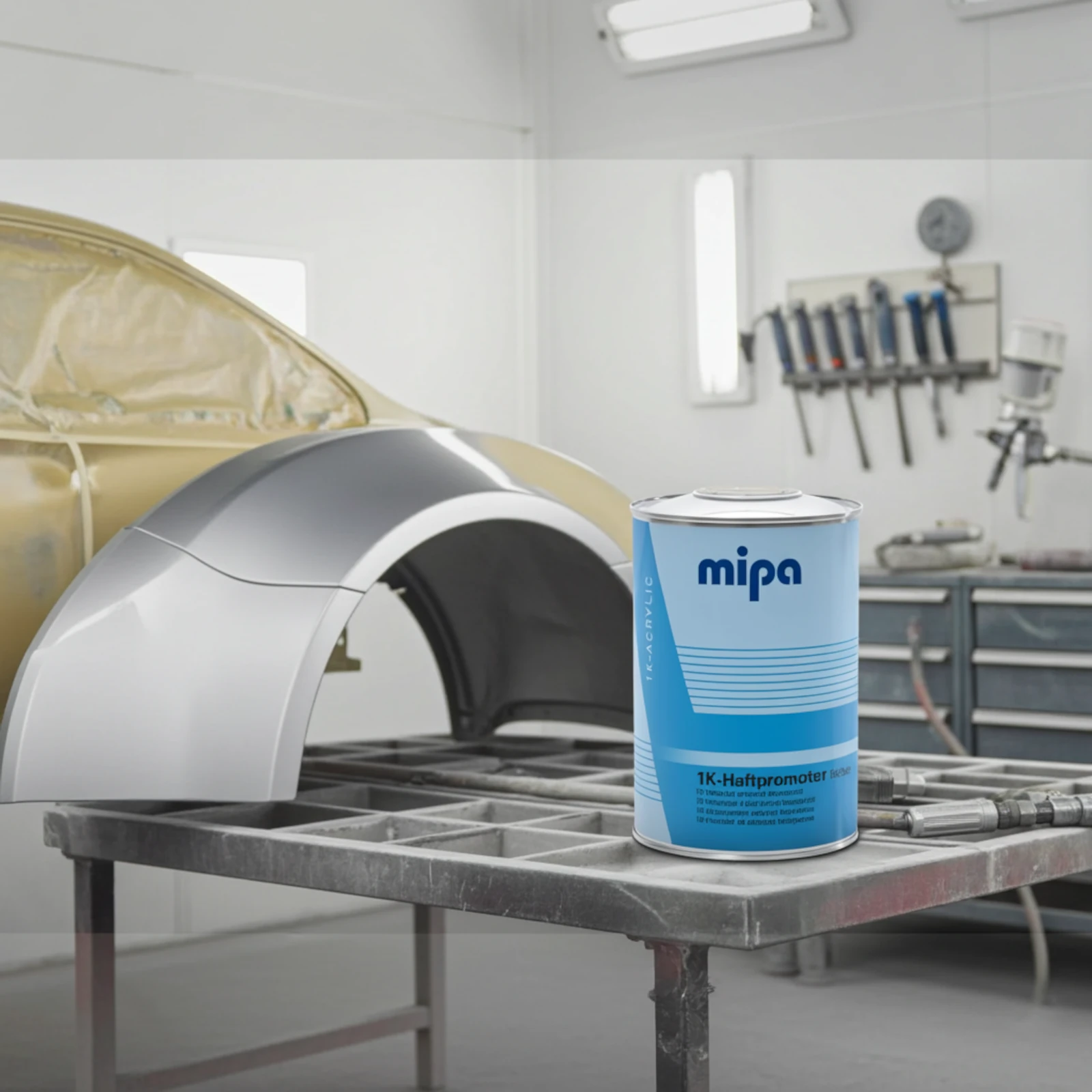 MIPA 1K Haftpromoter to całkowicie bezbarwny, jednokomponentowy podkład przyczepnościowy o uniwersalnym zastosowaniu, przeznaczony do zwiększania przyczepności lakierów na trudnych i problematycznych podłożach.